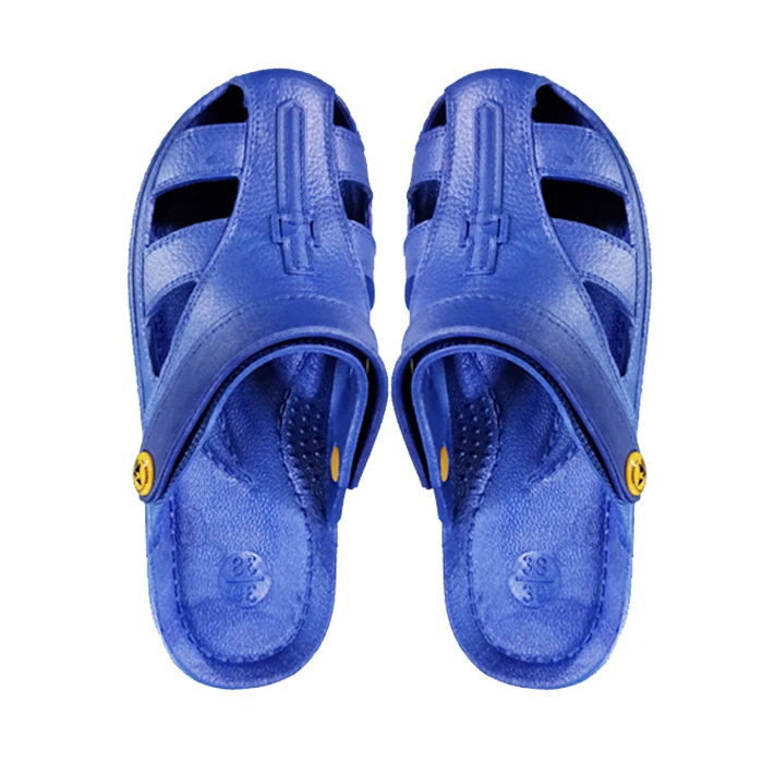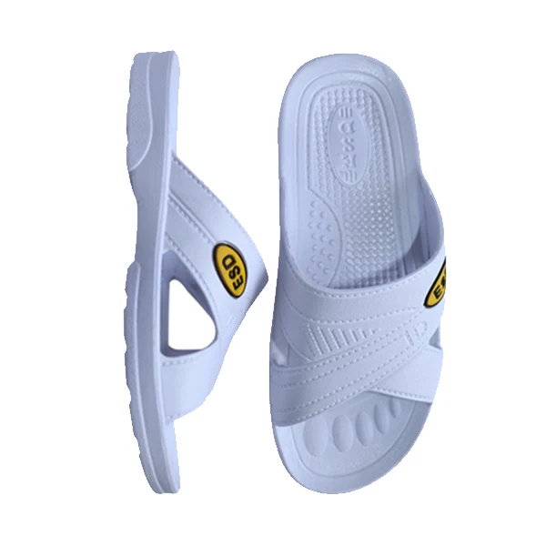 • Підошва: підошва антистатичних тапочок зазвичай виготовляється з дисипативних матеріалів PU (поліуретан) або ПВХ (полівінілхлорид). Ці матеріали мають хорошу провідність і можуть проводити статичну електроенергію від людського організму до землі. Крім того, підошва також виготовлена з антистатичних та проти ковзних матеріалів, які є абсорбентними та дезодоруючими, а також проти ковзання та стійкими до зносу.